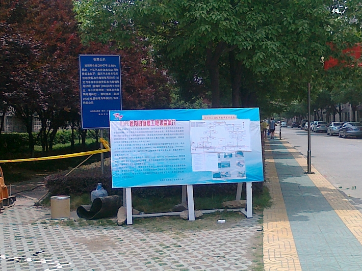 2010年五月份,在公司的大力支持下,修復分公司團隊共同努力下順利中標上海寶鋼(南京梅園小區)自來水管道內襯修復工程,該工程分為∮300、∮400管線。∮300管線在梅苑小區內,全長794米,分為10段。∮400管線從礦業紅綠燈至梅苑小區門口,全長866米,分為4段。合同工期90天,計劃工期70天完成!