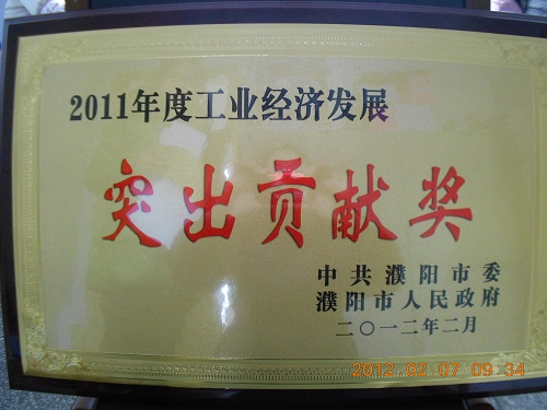 熱烈祝賀公司獲得濮陽市“突出貢獻(xiàn)企業(yè)”獎 (圖)