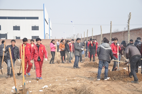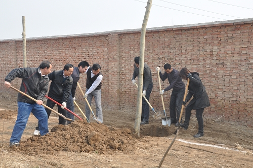 春風和暖,大地紫薇。公司發展日新月異,新廠區建設如火如荼。2012年3月10日,公司領導層、各分公司、各機關單位人員一行50多人熱火朝天的參加了新區綠化植樹活動。