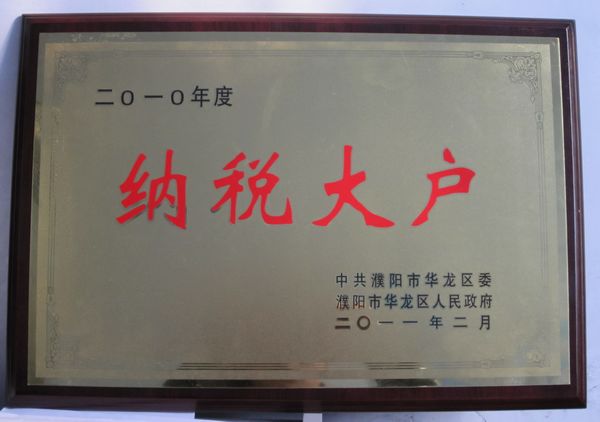 熱烈慶祝我公司獲得濮陽市華龍區(qū)納稅大戶稱號