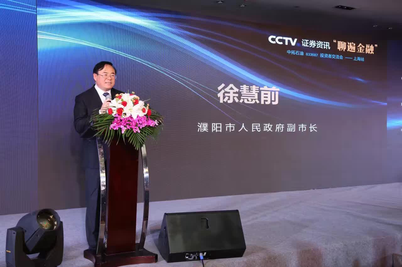 2016年10月28日,由CCTV證券資訊《聊遍金融》主辦的中拓石油(證券代碼833687)投資者交流會(huì)在上海圓滿落幕,濮陽市副市長徐慧前、金融辦副主任馬國文、華龍區(qū)副區(qū)長左留成、公司董事長徐效華、新技術(shù)推廣部部長王成全等出席,齊聚一堂暢聊新三板最具投資價(jià)值企業(yè):中拓石油(證券代碼833687)。